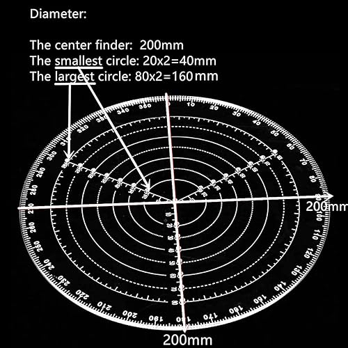 Center Finder Tool,Kompassfür Holzbearbeitung, Werkzeug zur Zentralsuchung,aus transparentem Acryl, Zeichenringe für Dreharbeiten, Schalen, Durchmesser 200 mm