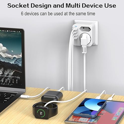 Mehrfachsteckdose mit 4 USB Netzstecker,Doppelstecker für USB Steckdose,Mehrfachstecker für USB Steckdose und USB C Adapter, Wand Ladegerät, Steckdosenleiste (weiß)