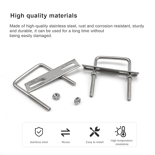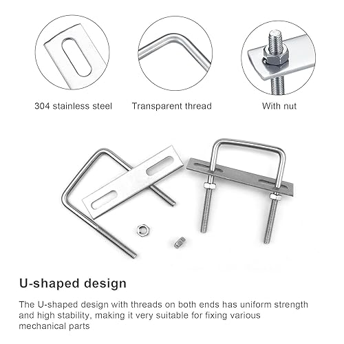 0XBIT Bügelschraube M8, 4 Stück 70 X 110 mm Edelstahl U Schrauben, Quadrat U Bügel mit Gewinde, mit 8 Muttern und 4 Rahmenplatten, Installation ist Stabil, für Pipeline, Feste Solarinstallation