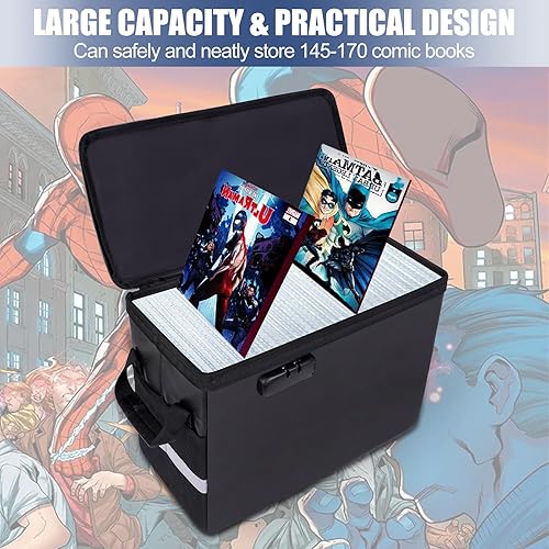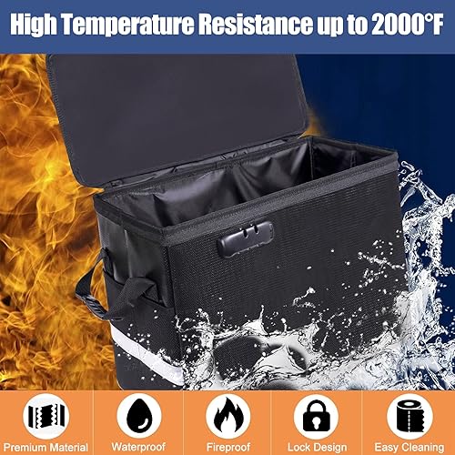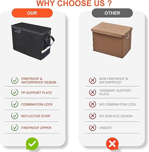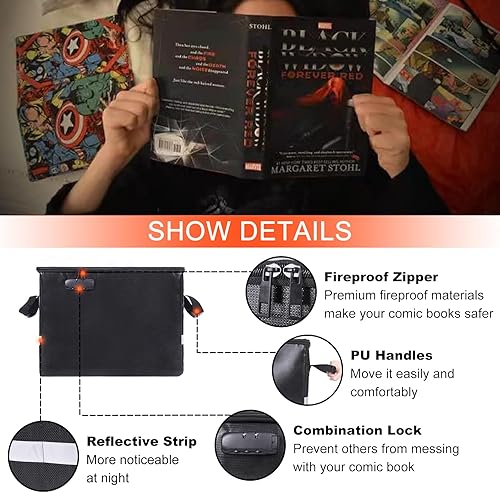 Feuerfeste Comic-Bücher-Aufbewahrungsbox 16' X 7.7' X 11.4',wasserdichte Dokumententasche Schimmelsicherer und Feuchtigkeitsbeständiger, Faltbarer, Schloss und Reißverschluss, für 150-175 Comics