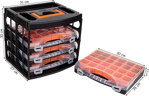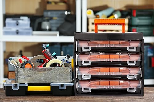 BigDean Sortierkasten Werkzeugkoffer mit 4 herausnehmbaren Schubladen - Sortierkästen Sortierkoffer – Sortimentskasten Schraubenbox - Organizer für Kleinteile