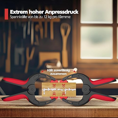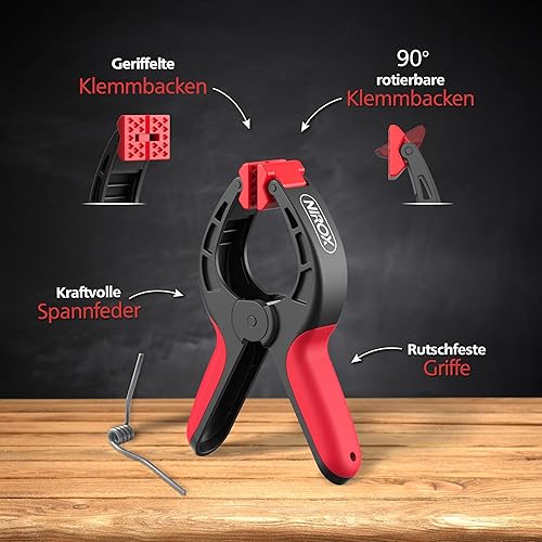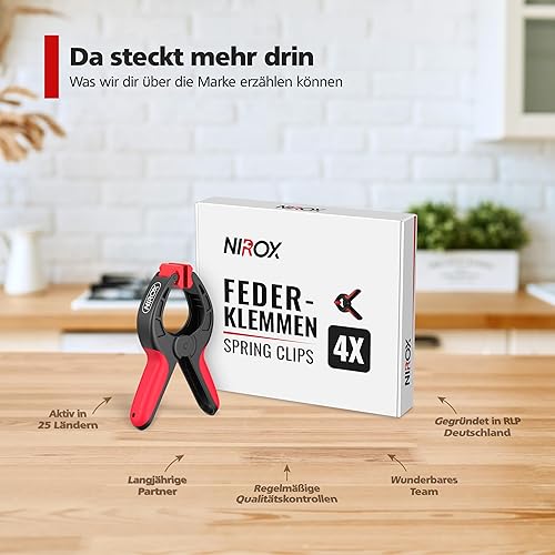 Nirox 4er Set Federklemmen - Klemmzwingen mit großer Spannweite - Hohe Spannkraft der Federzwingen - Leimzwingen mit beweglichen und geriffelten Klemmbacken - Einhandzwingen Schwarz