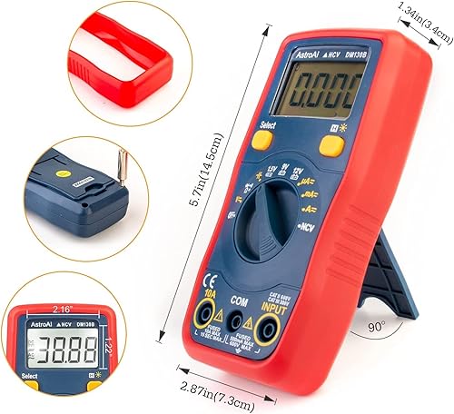 AstroAI Digital Multimeter, Auto-Range TRMS 4000 Counts Multimeter mit Berührungsloser Spannungsfunktion(NCV) LCD-Anzeige, Ohmmeter, Voltmeter 1,5 V / 9 V / 12 V Batteriespannungstester