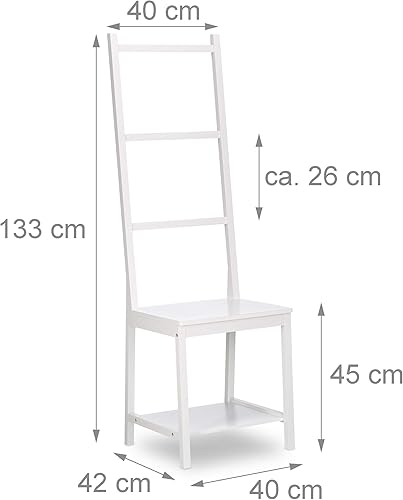 Relaxdays, Kleiderständer, Handtuchständer, Herrendiener, Badstuhl, Bambus, HxBxT: 133 x 40 x 42 cm, weiß Handtuchhalter, 42 x 40 x 133 cm