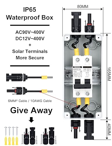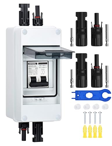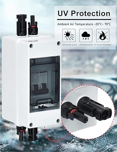 DC Trennschalter PV Anlage Leitungsschutzschalter Sicherungsautomat 2 Polig 30A 12V (12V-400V) Mit Kabel Solarstecker IP65 Wasserdicht Gehäuse