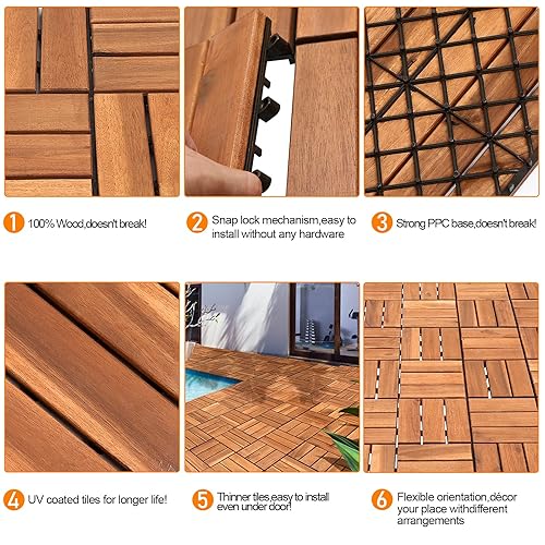 Ansobea 33er Pack Holzfliesen aus Akazien Holz,6 Latten Fliese Holzfliesen 30x30 cm - 1 m² .Balkonfliesen für Balkon, Garten & Terrasse | einfach, schnell & praktisch verlegt