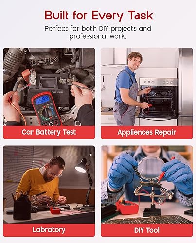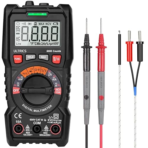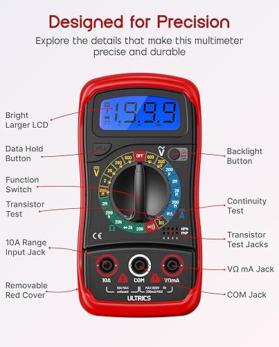 ULTRICS Digital Multimeter, Voltmeter, Batterietester, Spannungsprüfer, Durchgangsprüfer, Ohm Volt Ampere Messgerät AC/DC Spannung Strom Widerstand Diode Transistor, LCD-Anzeige und Hintergrundlicht