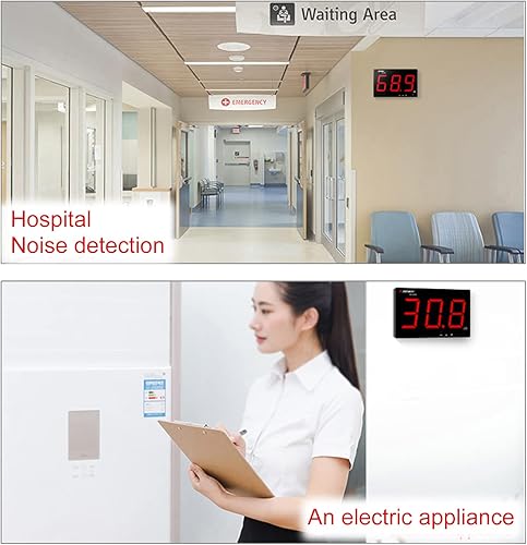 Dezibel Messgerät 30dB-130dB, Schallpegelmessgerät zum Aufhängen an der Wand mit Hintergrundbeleuchtung, db Messgerät mit großem Bildschirm Alarm für öffentliche Bereiche/Restaurants/Klassenzimmer