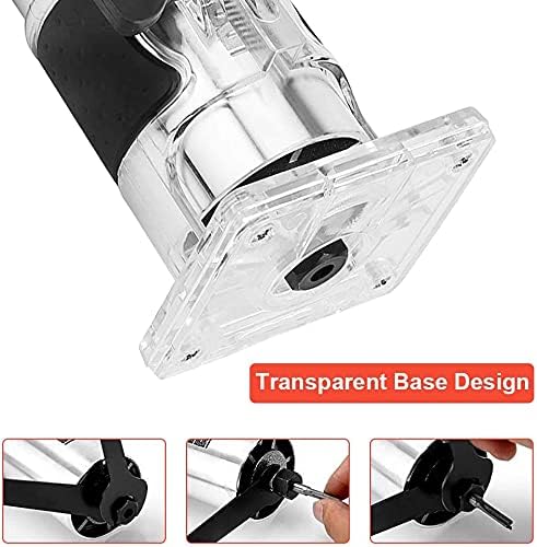 Oberfräse Multifräse Trimmer 6,35mm 30000 U/min Kantenfräse Holzfräse, Elektrische vertikale Einhandfräse Fräsmaschine Trimmfräser Vertikale mit Transparenter Grundkantenführung