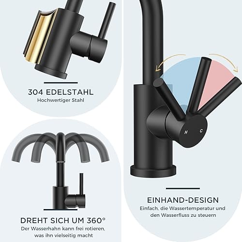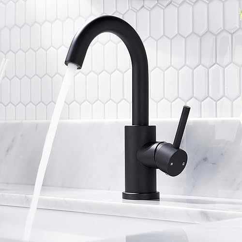 FORIOUS Wasserhahn Bad Hoch 360° Drehbar, Edelstahl Waschtischarmatur Hoch mit Warm/Kaltwasser Mischbatterie Einfache Montage für Badezimmer/küche Waschbecken Kleine Wohnmobil