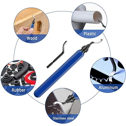 Dadabig 1 Set Entgrater Werkzeug Universal, Handentgrater mit 10 Stück 360 Grad Rotierender Klinge Schneidwerkzeug und 1 BS1010 Metallgriff, Entgratklinge für Stahl Aluminium Kunststoff Edelstahl
