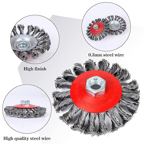 Drahtbürste für Winkelschleifer Ø 115 mm, M14-Gewinde Aufnahme, aus gewelltem HSS-Stahldraht, für Metall und Stein, zum Reinigen, Entzundern, Aufrauen und Entrosten(3 Pack)
