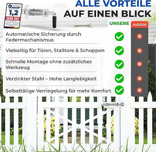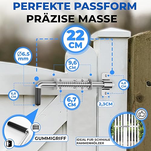 Torfix® Federriegel 220 mm Riegel robuster Torriegel Schlossriegel Türriegel zur sicheren Verriegelung Bodenschieber Riegel Torschlossriegel 6x selbstbohrender Torx-Schrauben für Tore und Türen