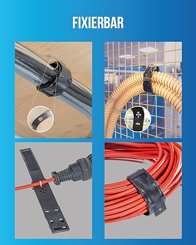flexibler Befestigungsgurt Schwarz 10Stück (360mmx42mm), Fix Strap PRO, Wiederverschließbar, Bündeln + Befestigen von Kabeln,Schläuchen,Sträuchern,Werkzeug,Werkstatteinrichtung,Garten,Haushalt