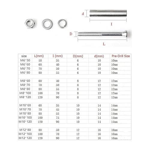 20X NUZAMAS M6x80mm Expansionsschrauben 304 Edelstahl-Expansionshülsen-Ankerbolzen Hochleistungs-Befestigungsanker für Schrauben Wandbau