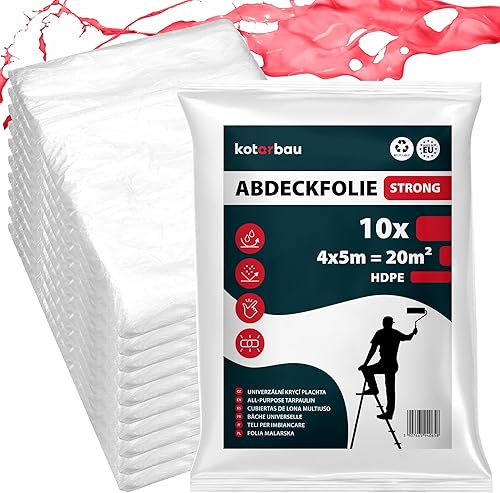 KOTARBAU® 10er Set Abdeckfolie Maler 4x5 m Transparente Plane Baufolie Transparent Staubschutzfolie Allzweck-Folie Malerplane Malerfolie Abdeckfolie für Renovierung und Umzug