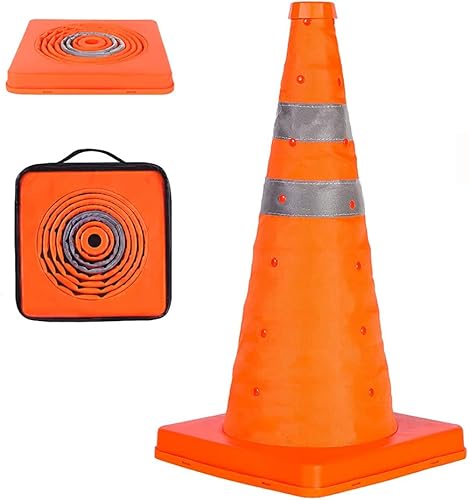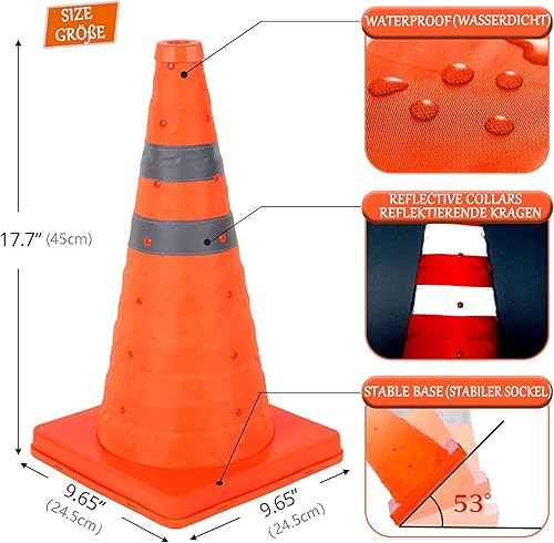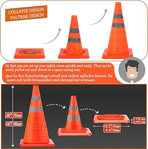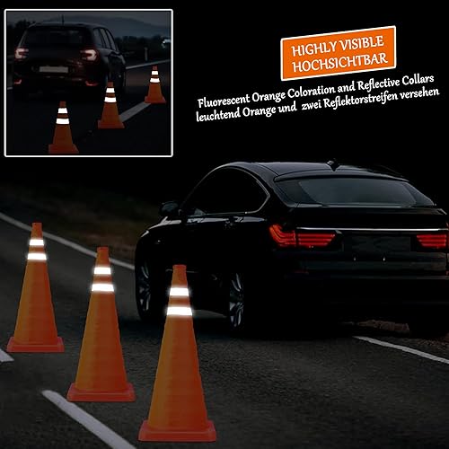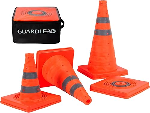 GUARDLEAD Warnkegel 4er Set, 70cm Reflektierender Verkehrskegel mit Warnleuchte, Orange Verkehrsleitkegel Pylone Faltbar, Faltbar Leitkegel für Straße Sicherheit (4, 70cm)
