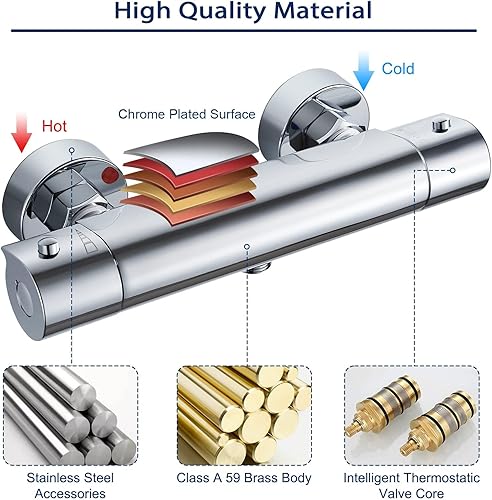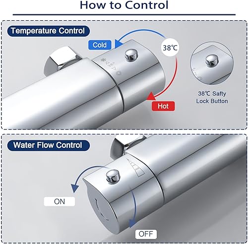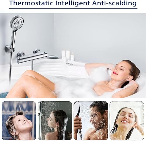 Namuoto Duscharmatur mit Thermostat Aufputz Brausethermostat, Thermostat Dusche Mischbatterie mit 38 °C Sicherheitstaste, Duscharmaturen Laiton Chrom