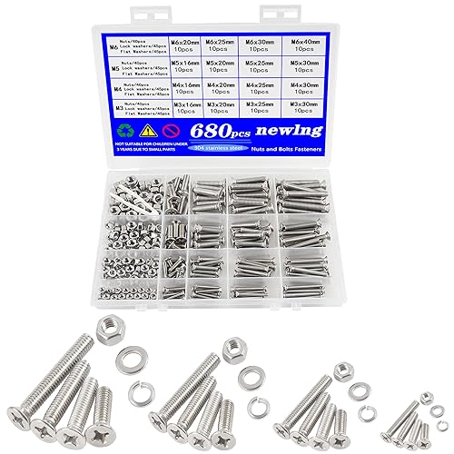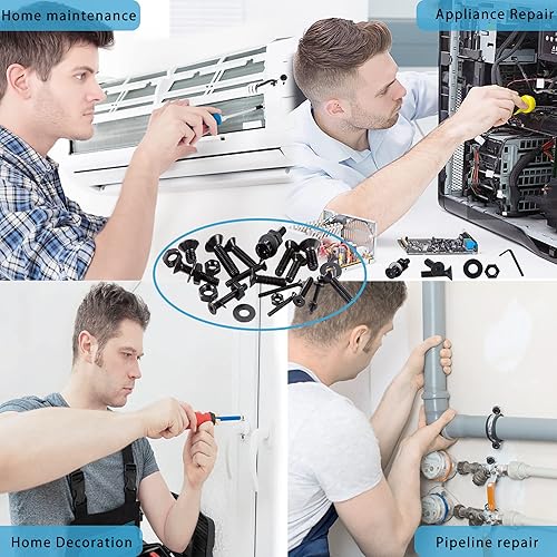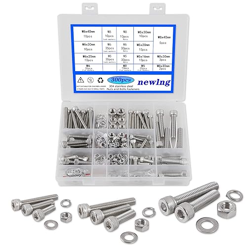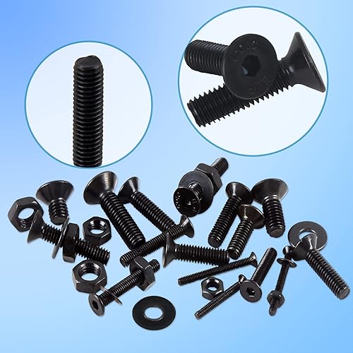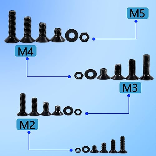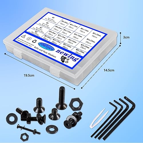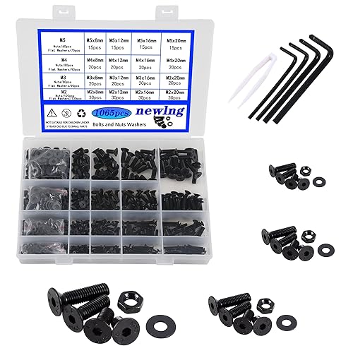 newlng M2 M3 M4 M5 Schrauben Set Kohlenstoffstahl Schwarz Schrauben und Muttern Unterlegscheiben Set 1185 Stück Hex Socket Rund-Knopfkopf Linsenkopf Innensechskant Schrauben mit Schraubenschlüssel