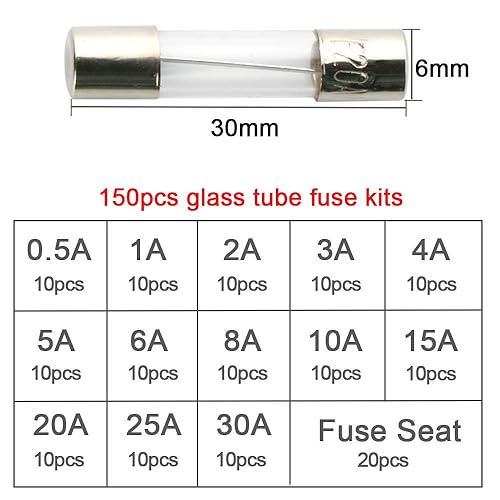 QitinDasen 130Pcs Professionell 6 X 30mm Auto Glasrohrsicherungen, Schnelle Schlag Glassicherung, Fast Schlag Glas Sicherungen, mit 20Pcs Sicherungssitz