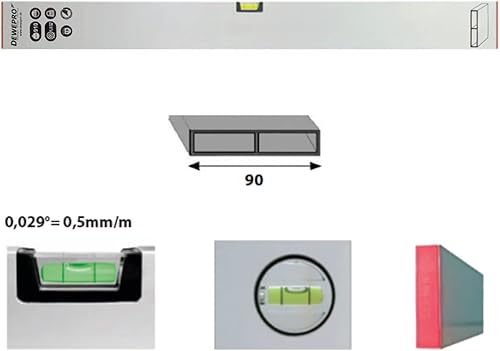 DEWEPRO® Estrich Richtlatte aus Aluminium 100cm - Setzlatte mit 1 Libelle - Putzlatte, Abziehlatte für glatte Flächen - Richtscheit