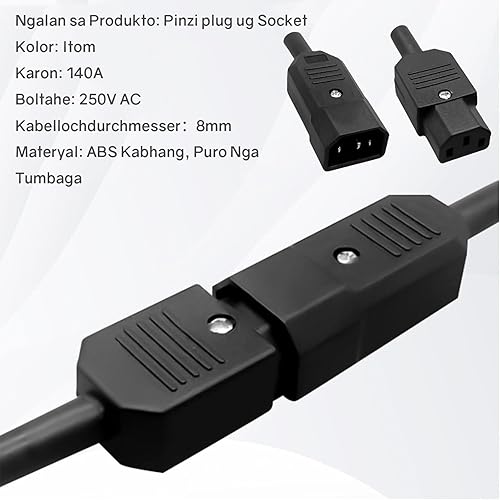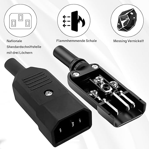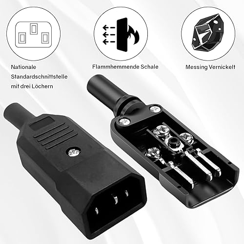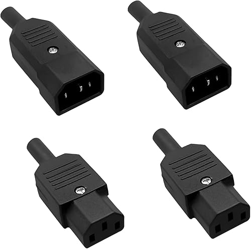 Powice 4 pcs Kaltgerätestecker AC 250V C14 C13, Kaltgerätebuchse, Buchse Stromanschluss 10A 3 Polig IEC 320 Kaltgerätestecker für Computer Netzanschluss-Verlängerung, Kaltgeräteverlängerung