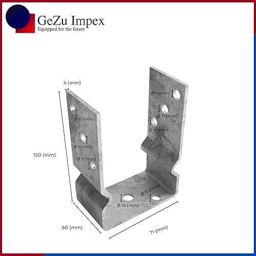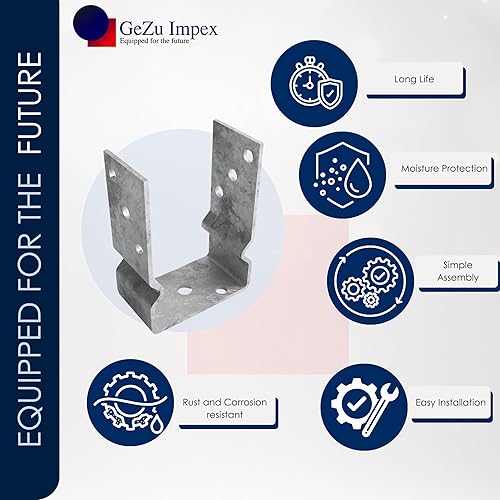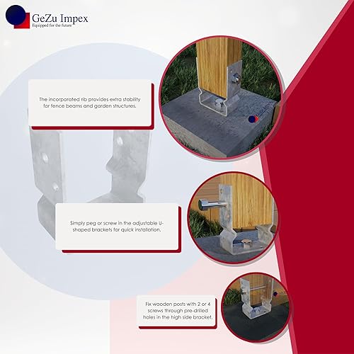 GeZu Impex® U-Pfostenträger Edelstahl 71 mm aufdübelbar mit Sicke Pfostenlasche, U-Form mit Wulst aufdübelbar