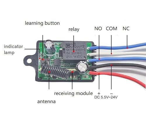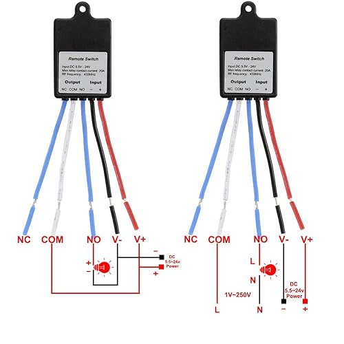 QIACHIP DC 5V 6V 12V 24V Drahtloser Relais-Fernbedienungsschalter 20A 1Kanal 433MHz RF-Relais-Empfänger mit 2 Sendern, Dry Kontaktrelais für Zugangskontrolle,Autobatterie Anti-Leck Nachrüstung