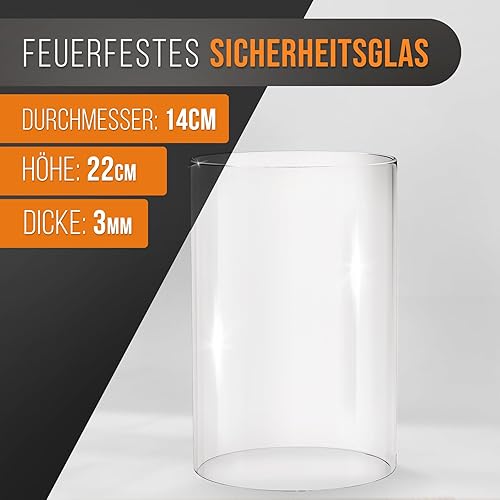 flammtal - Ersatzglas für Bioethanol Tischkamin - Feuerfester Glaszylinder [Ø 14 cm/Höhe 22cm] - Kompatibel mit flammtal, Edelfeld & weiteren Ethanol Tischkaminen - Hitzeresistentes Borosilikatglas