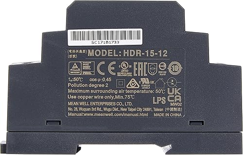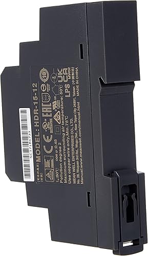 Hutschienen-Netzteil, 15 W, 12 V, 1,25 A; MeanWell HDR-15-12; DIN-Schienen-Transformator.