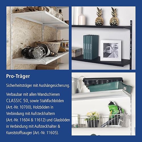 Element System PRO-TRÄGER - Sicherheitsträger mit 2 Einhängehaken und Aushängesicherung - 500 mm, Stahl, Weiß, 2 Stk.