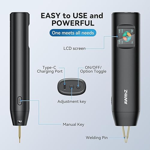 Akku-Punktschweißgerät, AWithZ1,5 Zoll LCD 99-Gang einstellbares Hand-Punktschweißgerät, tragbarer Punktschweißer mit automatischem und manuellem Modus, Punktschweißgerät für 18650-Akku