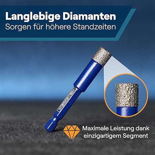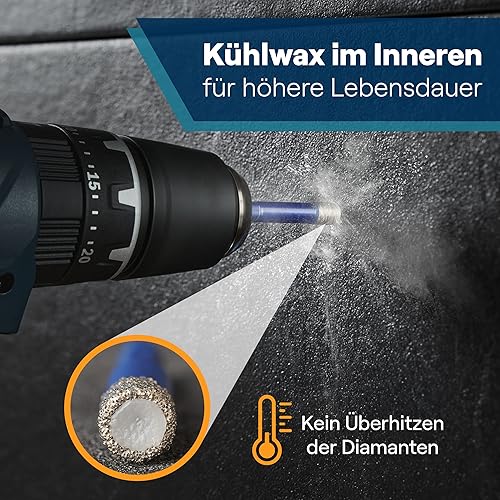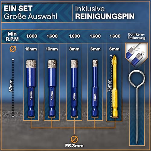 WERKSTEIN Fliesenbohrer Set - 6I8I10I12mm Glasbohrer & 6mm Karbid-Anbohrer - Diamantbohrer zum Bohren von Fliesen, Glas, Marmor, Granit uvm. - Keramikbohrer/Diamantbohrer für harte Fliesen