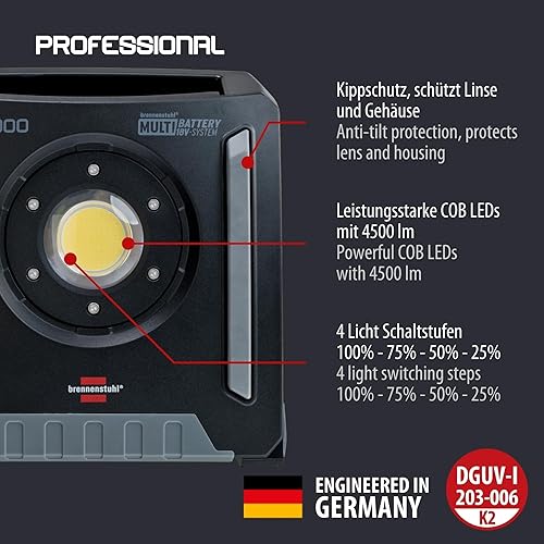 Brennenstuhl Professional Multi Battery LED Hybrid Baustrahler 6050 MH (60W, 6200lm, IP65, LED Baustrahler kompatibel mit 18V Akkus 11 verschiedener Hersteller, 5m, ohne Akku, Engineered in Germany)