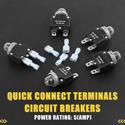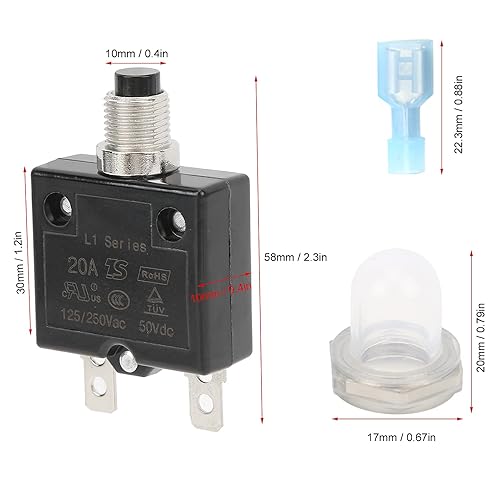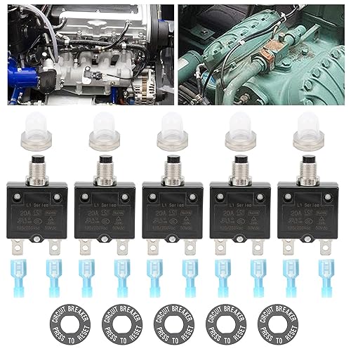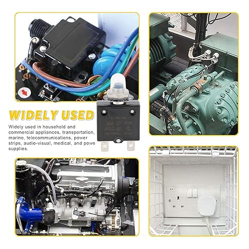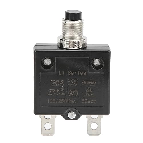 Thermischer Schutzschalter, 20A 125/250VAC Schutzschalter Druckknopfrückstellung Überlastschutzschalter mit Schnellanschlussklemmen Wasserdichter Kappendruckknopf