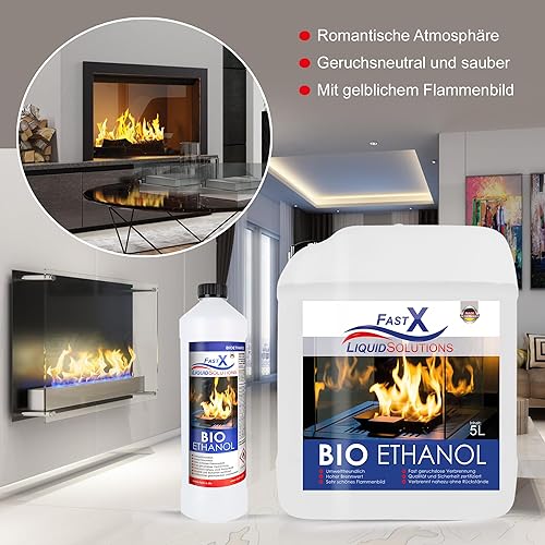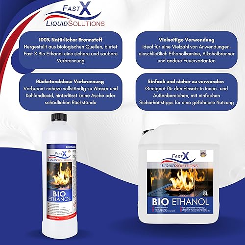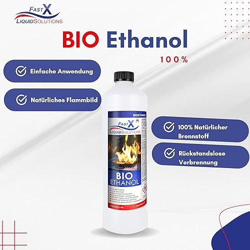 Fast X Bio Ethanol 30x1L - 100% Natürlich, für Ethanol-kamine & Tischkamine. Umweltfreundlich & geruchsfrei, sicher für Raum- & Gartenfeuer mit rückstandsloser Verbrennung