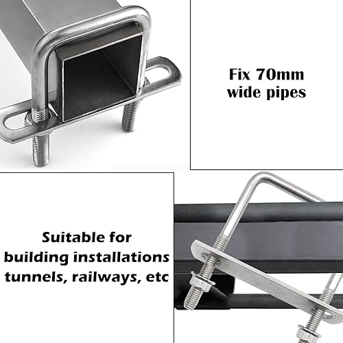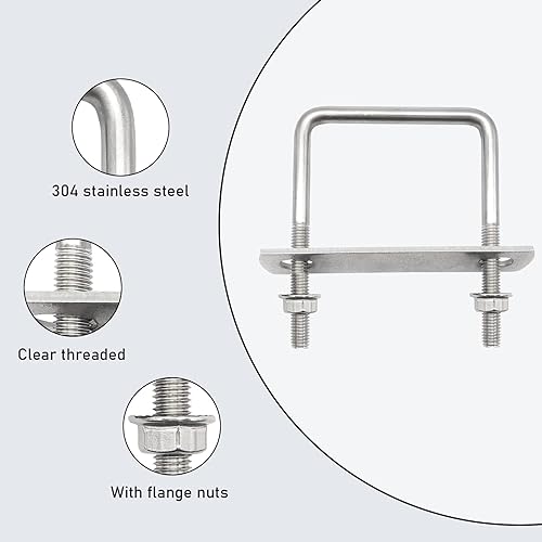 U Bolzen M10 U Bügel 100x100mm Bügelschraube Quadratisch mit Rahmenplatte und Unterlegscheiben, 2 Stück