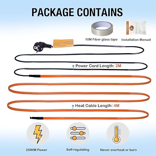heninhill Frostschutz Heizkabel 4M Heizleitung Begleitheizung Selbstregulierend Wasserdicht zum Schutz von Wasserrohren Pflanzen Dachrinnen