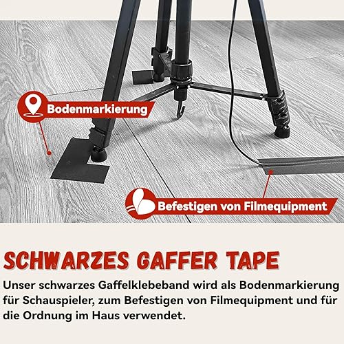 Birllaid Schwarzes Gaffer Tape 1inch x 30 yards -Schweres Gaffer Tape für Kabel, Fotografie, Theater Bühne Setup, Innenarchitektur, Rückstandsfrei, nicht reflektierend, leicht zu reißen