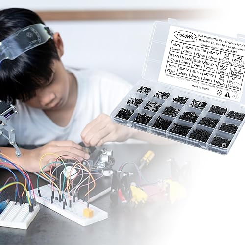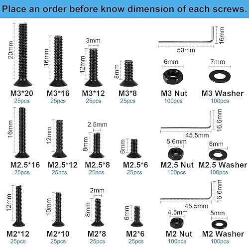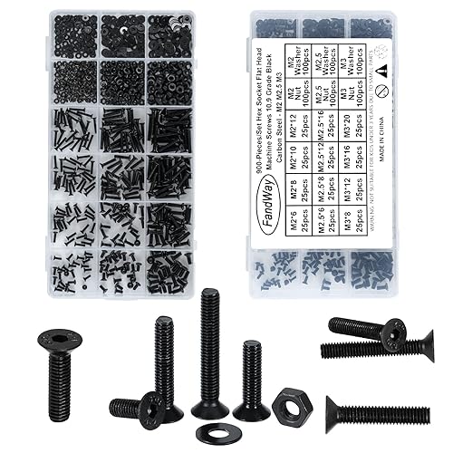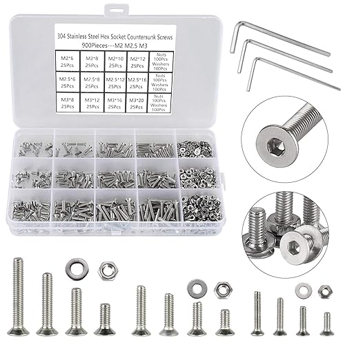FandWay 900 Stück M2 M2.5 M3 Senkkopfschrauben, 304 Edelstahl Hex Flach-Knopf Schraube Set,Sechskantschrauben Muttern und Unterlegscheiben Sortiment mit Schraubenschlüsseln.
