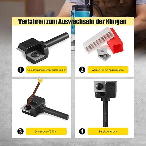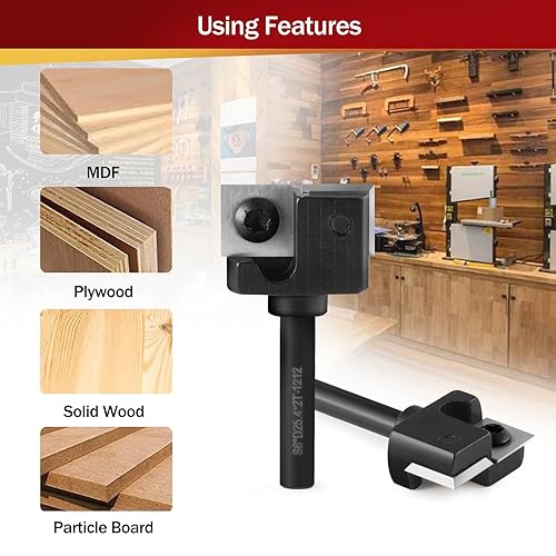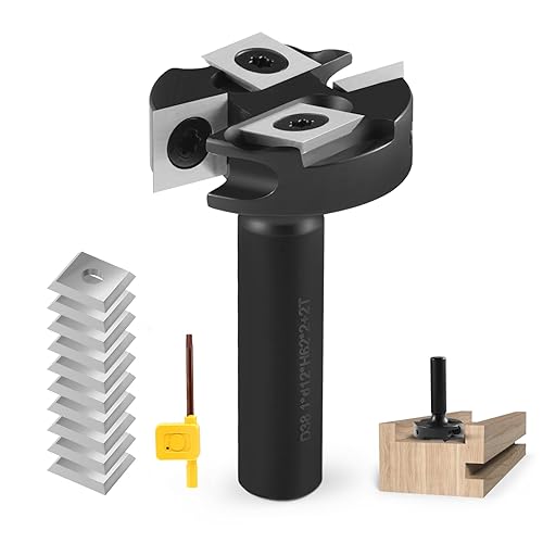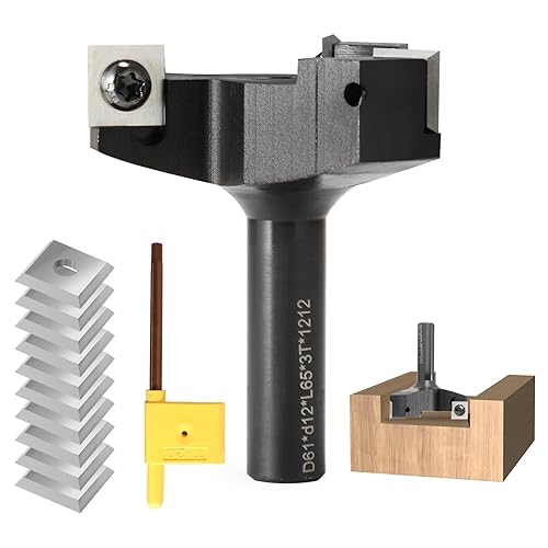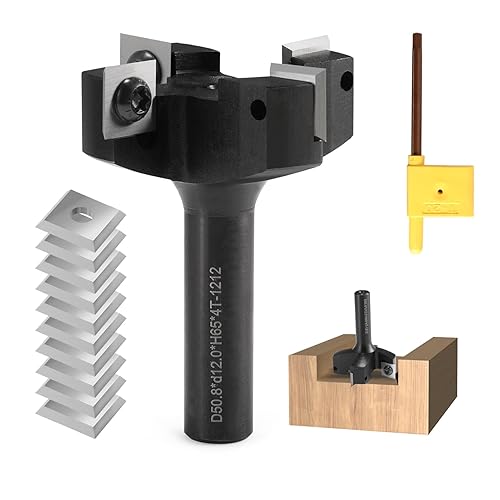 Trvoxviq Planfräser 12mm Schaft 2+2 Flöten, 38.1mm Durchmesser Hobelfräser für Oberfräse mit 10 PCS Wendeplatten (12x12X2.2mm), Spoilboard Schaftfräser Abflachfräser Oberflächenbit für Holzbearbeitung