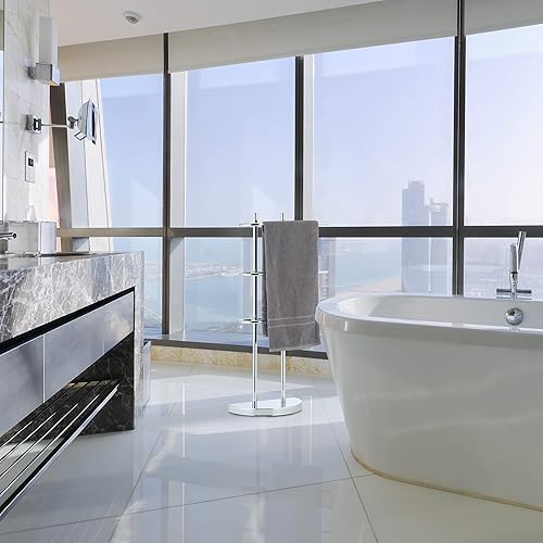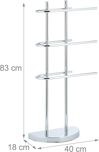 Relaxdays, dreiarmig, Silber Handtuchhalter Chrom, Halbrunder Fuß, Handtuchständer freistehend, Metall, HBT: 83x40x18 cm