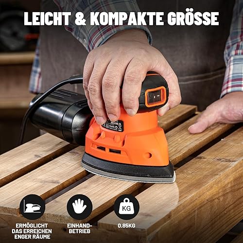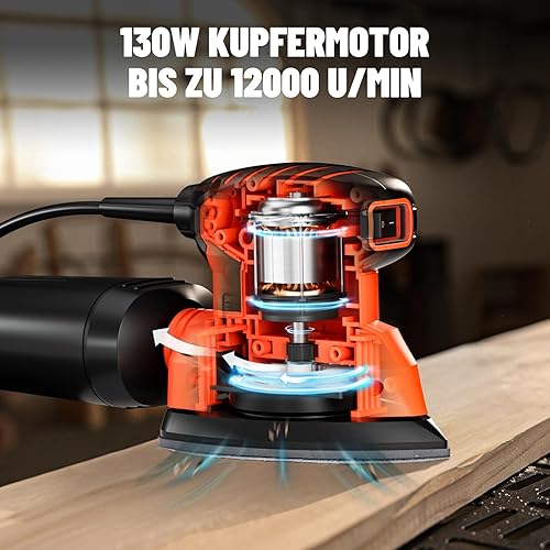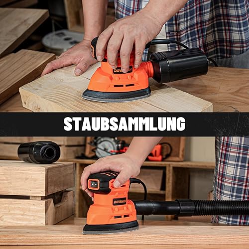 DOVAMAN DLS03A Deltaschleifer, 130W Dreieckschleifer, bis zu 12000 U/min, 12 Stück Schleifpapiere (140x140x80mm), Zwei Staubabsaugoptionen, Schleifmaschine für Holz- und Stahloberflächen