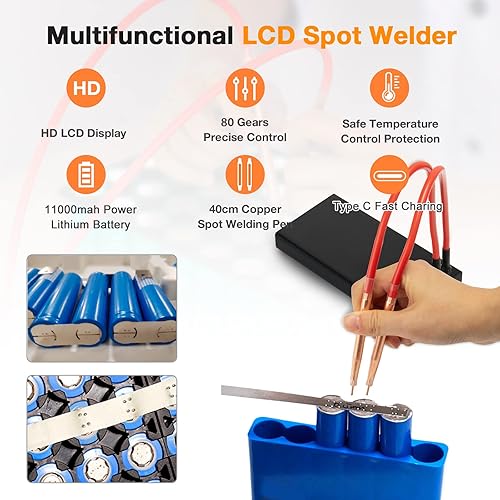 Punktschweißgerät 11000mAh Tragbares Mini Punktschweißgerät Batterie, 80 Gänge Punktschweißgerät mit LCD Bildschirm Typ-C-Anschluss, Nickelstreifen und USB Ladekabel (11000mAh)