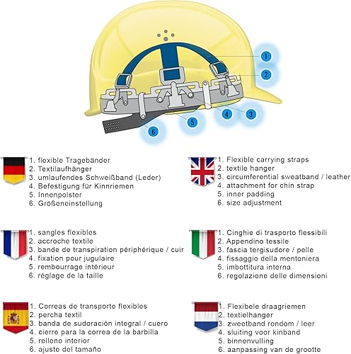 GUARD 5 - BAU-Schutzhelm - DIN EN 397 - Einstellbarer Arbeitshelm - Bauarbeiterhelm Schutzhelm Bauhelm - mit 6-Punkt Gurtband mit Leder Schweißband an der Stirn