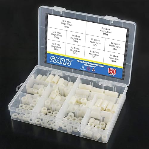 Glaks 150Pcs 10 Größen Nylon Runde Abstandshalter Sortiment Kit, OD 11mm ID 6.2mm für M6 Schrauben, rundes gerades Rohr, Nylon Abstandshalter (3mm, 4mm, 5mm, 8mm, 10mm, 12mm, 15mm, 18mm, 20mm, 25mm)