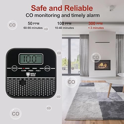 Kohlenmonoxidmelder Kohlenmonoxid-Warnmelder Batterie versiegelt 10 Jahre Lebensdauer WOLF SHIELD Tragbarer Mini CO Melder mit Display Test Stummschalttaste für Haus,Wohnmobil und mehr
