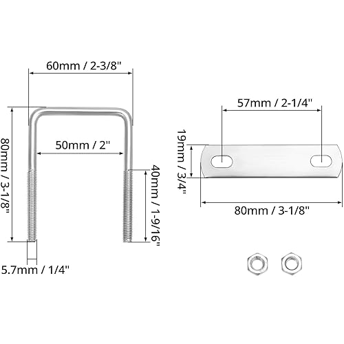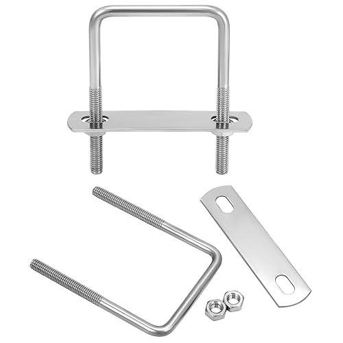 QWORK® 6 Stück M6 Edelstahl U Bolzen Set, 80 x 50 mm U-Bügel, hohe Tragfähigkeit, mit Muttern und Rahmenplatte, für mehrere Anwendungen