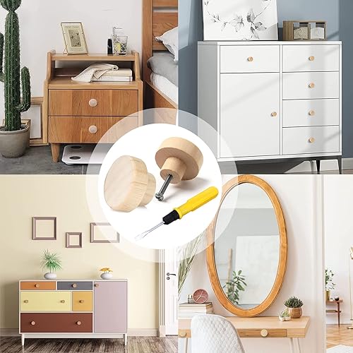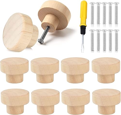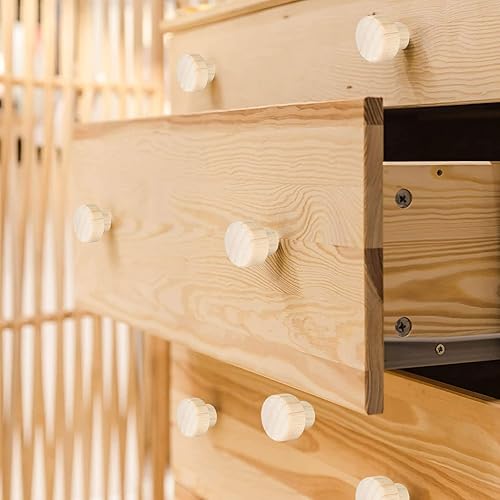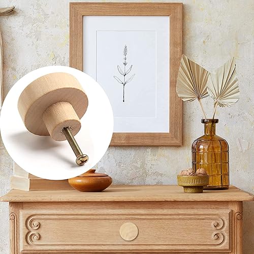 JOKILY 10 Stück Holz Schubladengriff, Möbelknöpfe, Holz Schubladengriffe, Schrankknöpfe Mit Schrauben, Griffe Möbel Knöpfe, Knäufe für Schränke und Schubladen, Rund 33 x 25 mm