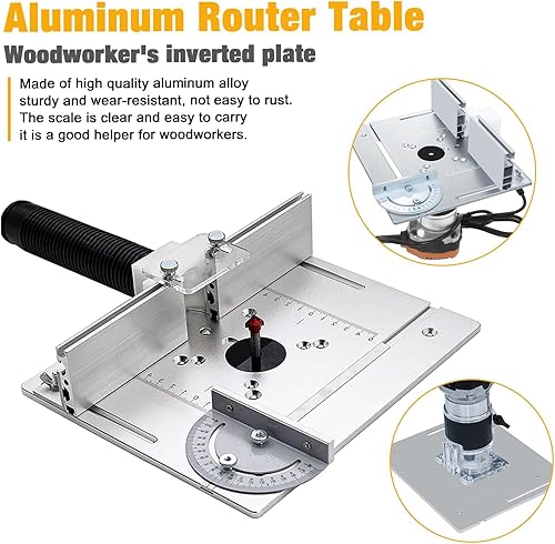 3-teiliges Set Frästisch Einlegeplatte, Aluminium Frästisch für Oberfräse mit Halterung Fasenmoment, Tischfräse Einlegeplatte, Einlegeplatte Oberfräse für Oberfräse Fasenfräsen